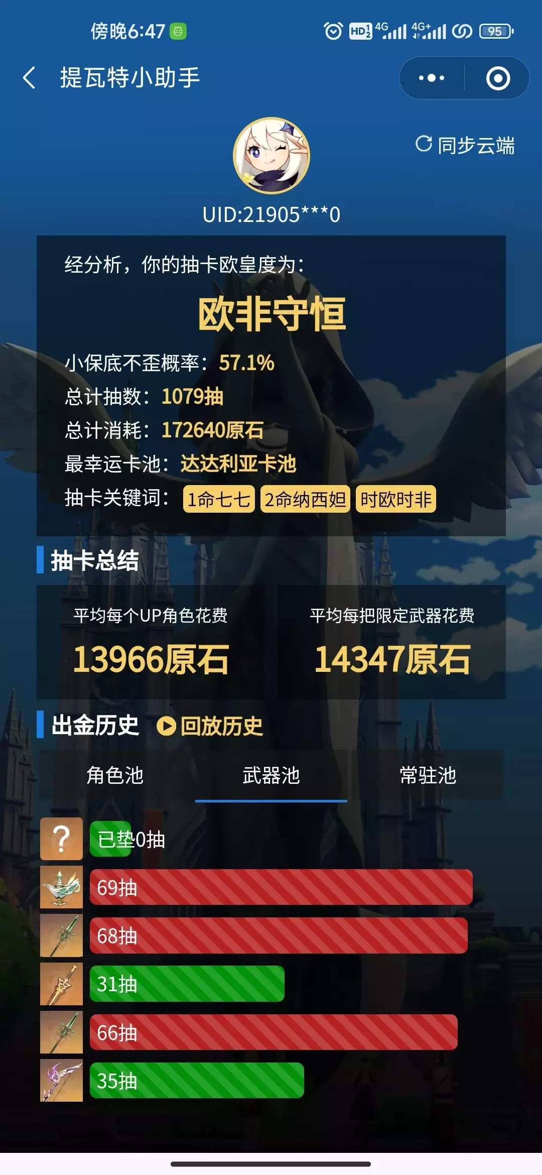 由室友抽的,歪了 3 次,不过都是提前金,也不算亏吧,甚至有点欧~