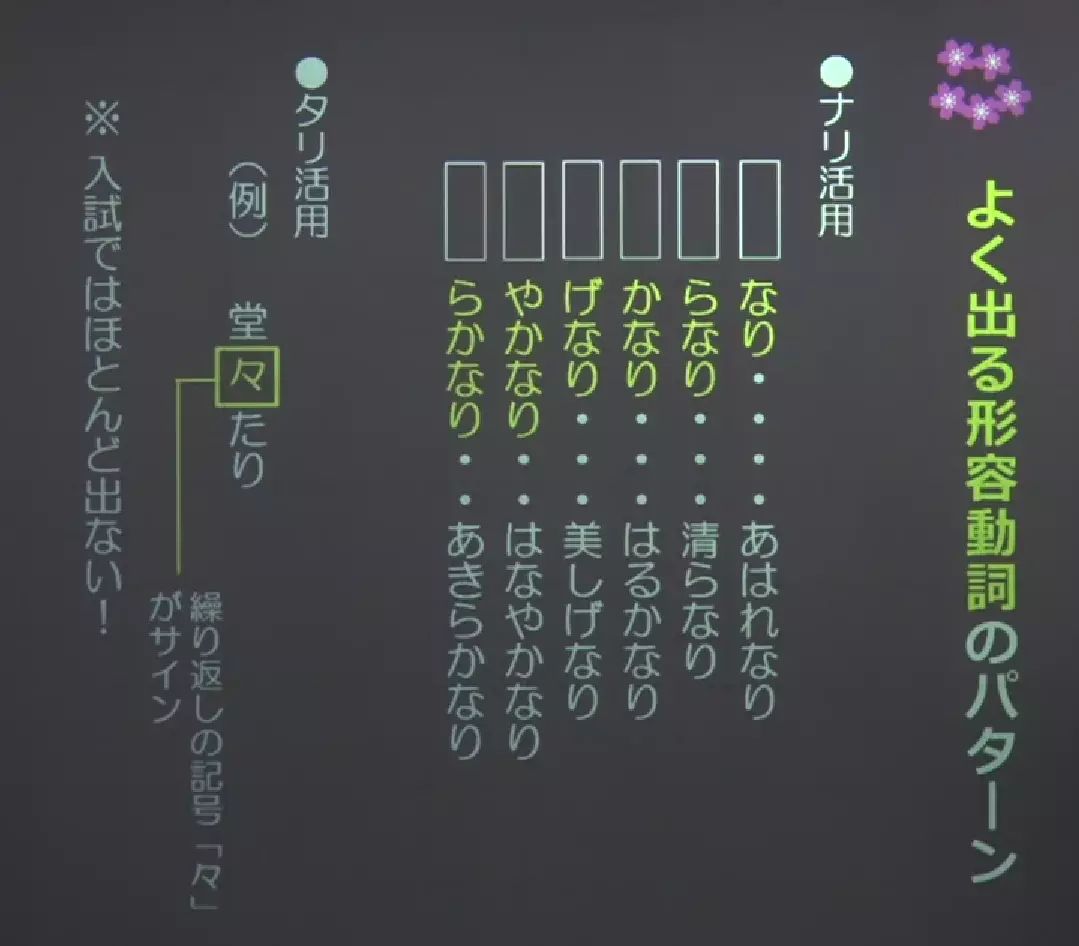 使用「なり」「たり」的不同情况。有「々」这样表示重复的符号的为「たり」活用,其余为「なり」活用,可以记一下常见的「なり」前的形式