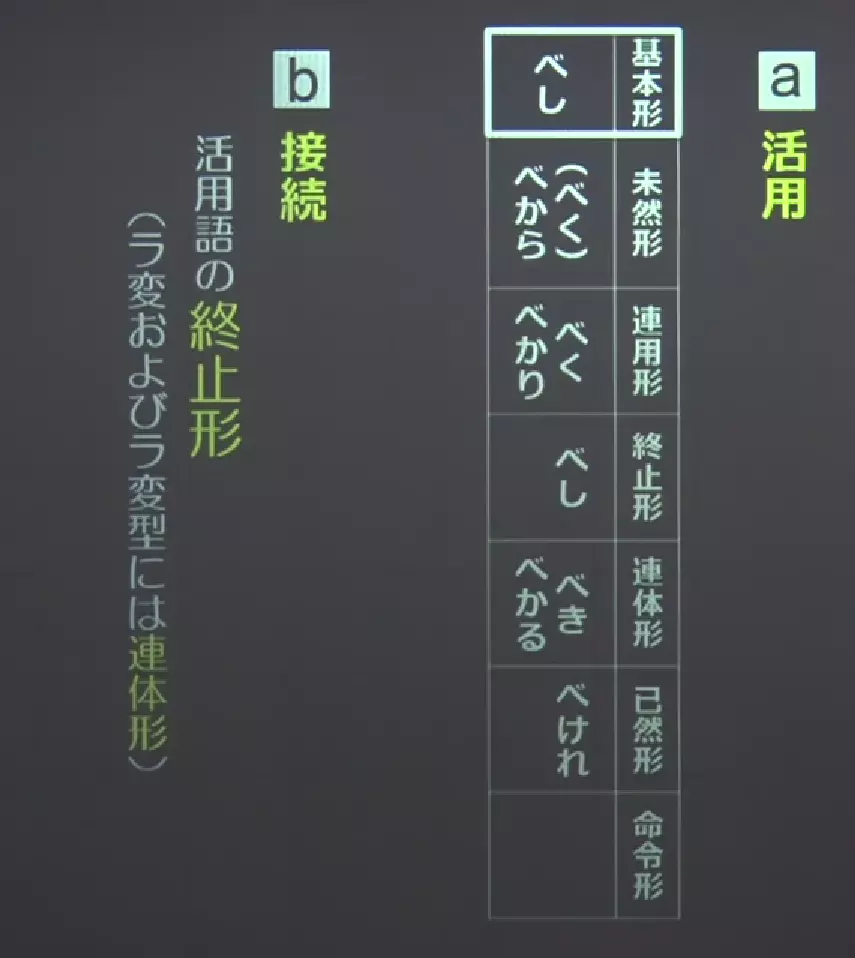 活用和形容词类似,左边的补助活用一般后面接助动词,右边则是接非助动词。