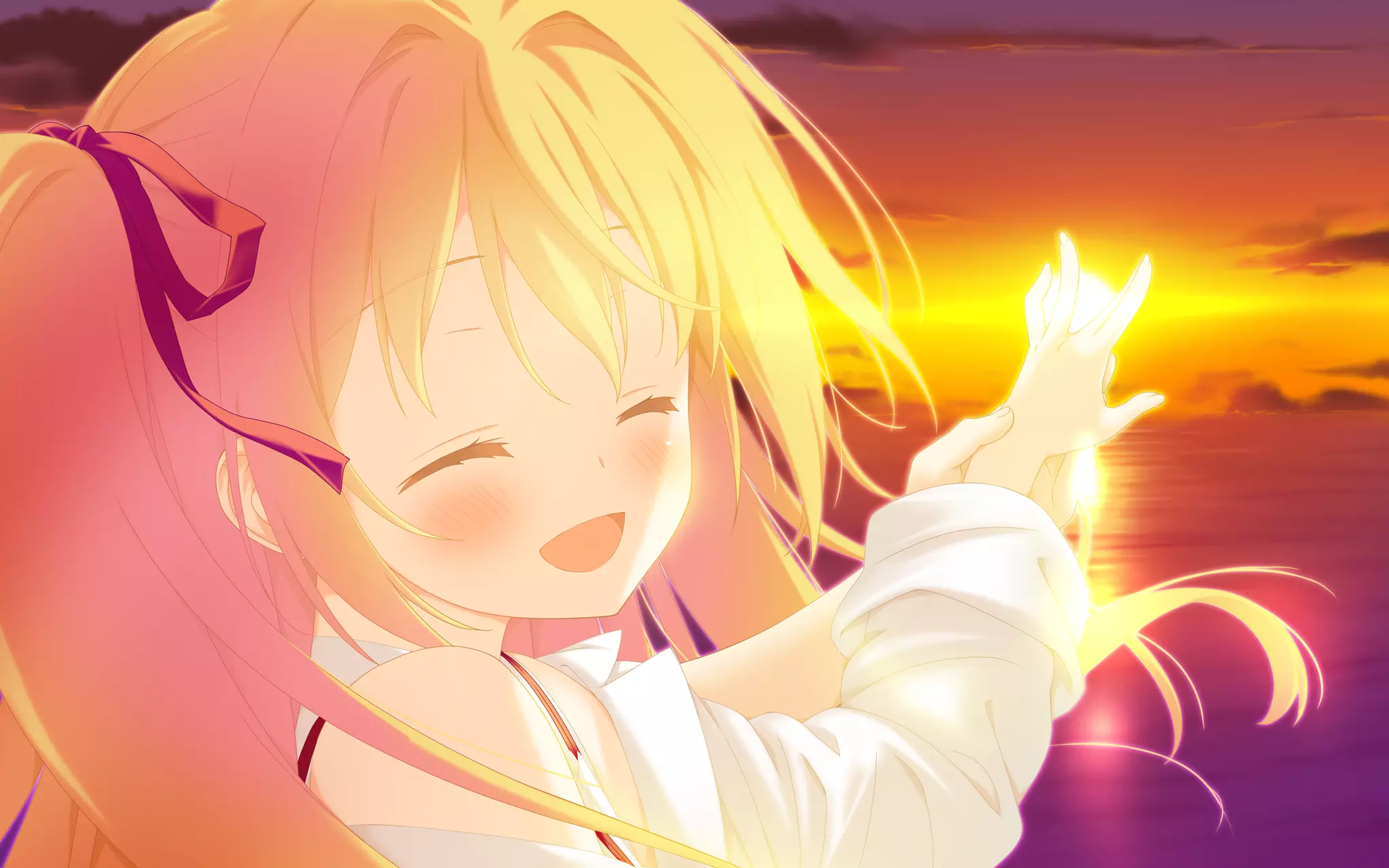 不过有一说一,该发糖的地方还是发了糖的,夕阳下这张 CG 就挺不错的(然而正如前面所说,这个时候我刚经历了一个通宵,推到这里快结束的时候实在是焦虑了,所以其实没有太大的感觉,但是真红还是很可爱)